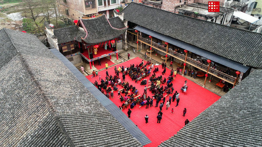 2020年1月1日拍于湖南省祁陽縣白水鎮(zhèn)洲上里村楊家,楊家組織村民在祠堂歡慶新年的到來。[攝影:鄧宏鈺]