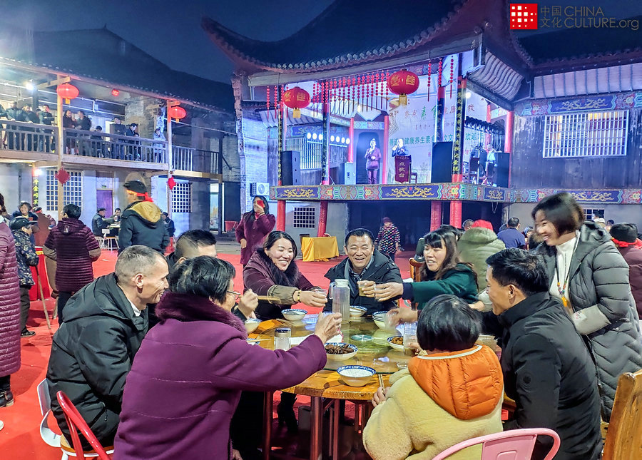 2020年1月1日拍于湖南省祁陽縣白水鎮(zhèn)洲上里村楊家,楊家組織村民在祠堂歡慶新年的到來。[攝影:鄧宏鈺]