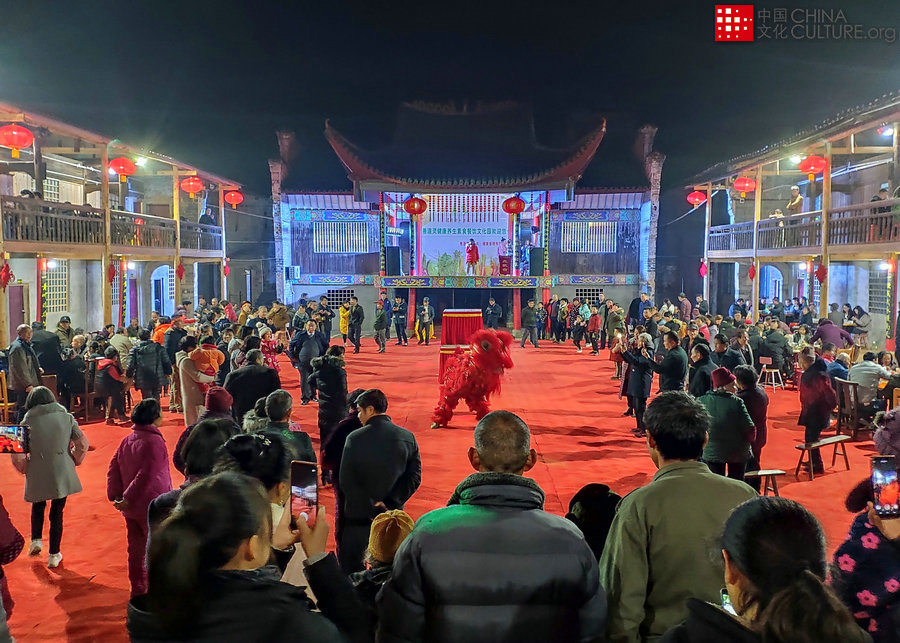 2020年1月1日拍于湖南省祁陽縣白水鎮(zhèn)洲上里村楊家,楊家組織村民在祠堂歡慶新年的到來。[攝影:鄧宏鈺]