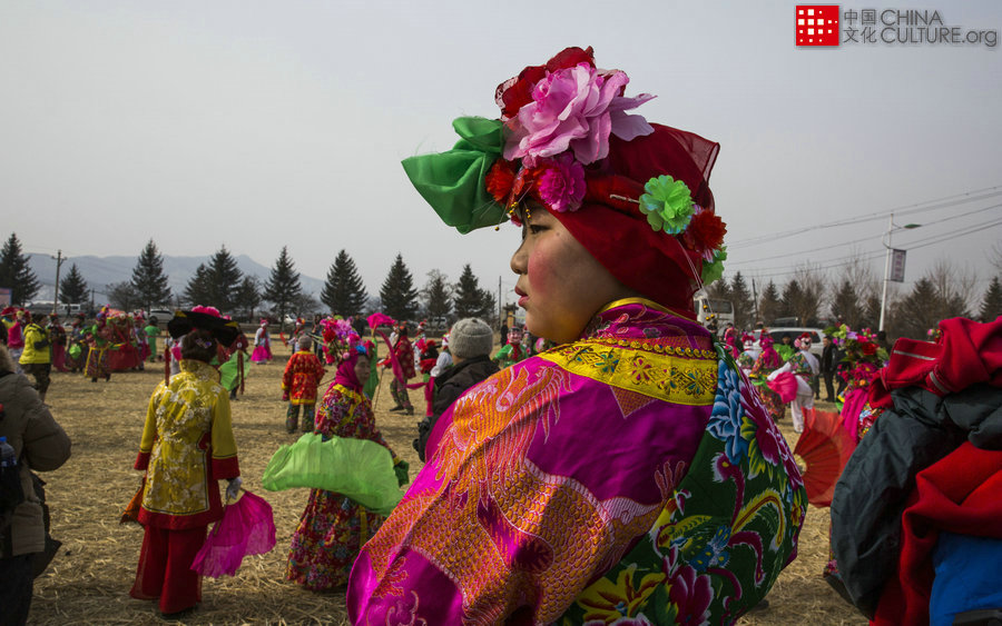 2018年2月22日拍攝于遼寧撫順新賓永陵鎮(zhèn)。撫順新賓地秧歌,有時也被稱為"韃子秧歌",是一種形成年代久遠(yuǎn),民族性、民間性及地域特色都極為濃厚的民間舞蹈形式,主要流傳在遼寧省東北部的撫順市滿族的故鄉(xiāng),清王朝的發(fā)祥地。2006年6月,滿族秧歌被國務(wù)院列入《第一批國家級非物質(zhì)文化遺產(chǎn)代表作名錄》。[攝影:董士陽]
