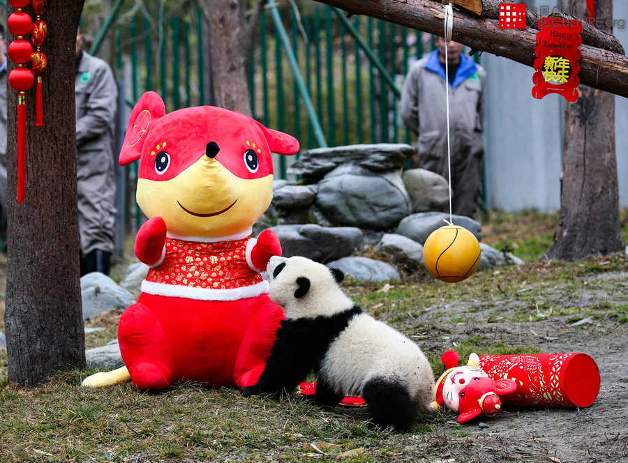 2020年1月17日拍攝于四川省汶川縣中國大熊貓保護研究中心神樹坪基地。1月17日,農(nóng)歷小年,四川汶川中國大熊貓保護研究中心神樹坪基地2019出生的20只熊貓寶寶在基地幼兒園集體亮相,人手一只大熊貓拜年,是中國人最獨特的拜年了。[攝影:肖飚]