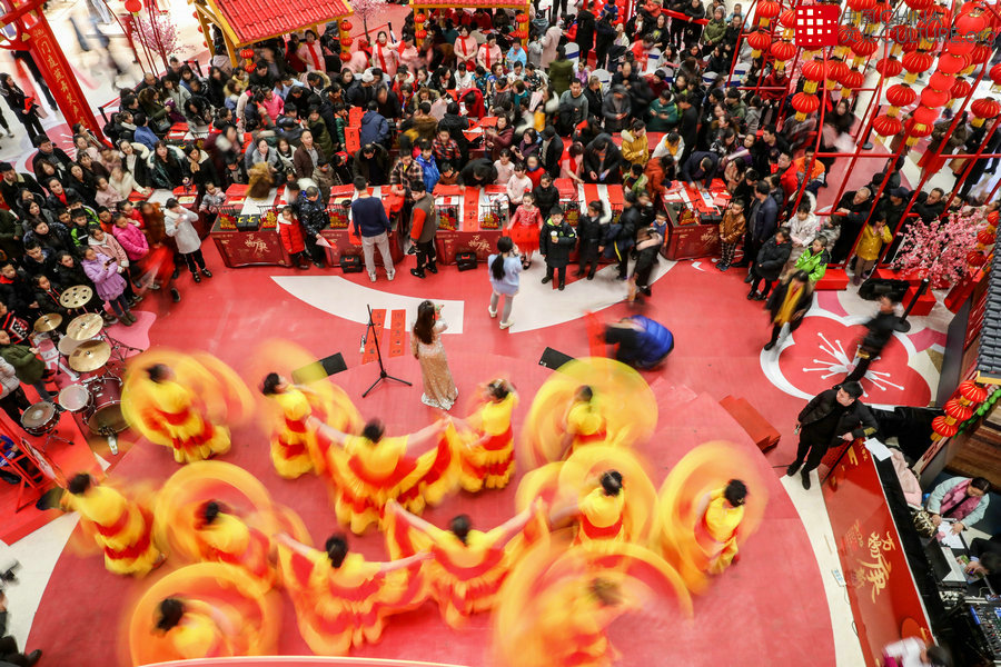 2020年1月19日拍攝于山西省孝義市。山西省孝義市文聯(lián)主辦的2020民俗文化節(jié)開幕式上,各種民俗文化展演精彩紛呈,書法家們揮毫潑墨,把一幅幅帶有美好祝愿的春聯(lián)送到市民手中。[攝影:劉海霞]