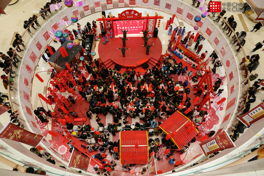 2020年1月19日拍攝于山西省孝義市。山西省孝義市文聯(lián)主辦的2020民俗文化節(jié)開幕式上,各種民俗文化展演精彩紛呈,書法家們揮毫潑墨,把一幅幅帶有美好祝愿的春聯(lián)送到市民手中。[攝影:劉海霞]