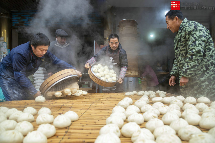 2020年1月15日拍攝于江蘇省蘇州張家港市樂余鎮(zhèn)。新年即將到來,家家戶戶蒸饅頭是農(nóng)村的習俗,備足各種餡的饅頭可以吃到開年春天,熱氣騰騰的饅頭象征老百姓豐收的好日子蒸蒸日上。[攝影:季奕]