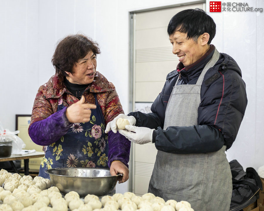 2020年1月15日拍攝于江蘇省蘇州張家港市樂余鎮(zhèn)。新年即將到來,家家戶戶蒸饅頭是農(nóng)村的習(xí)俗,備足各種餡的饅頭可以吃到開年春天,熱氣騰騰的饅頭象征老百姓豐收的好日子蒸蒸日上。[攝影:季奕]