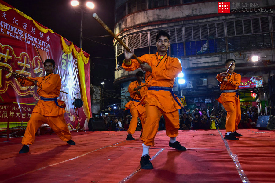 Photo taken at Territy Bazar, Central Kolkata, India on Jan 24, 2020.  Indian Chinese Association for Culture, Welfare and Development in Kolkata organized a wonderful Chinese New Year celebration program at Territy Bazar, Central Kolkata, India. [Photo by Mayukh Mitra]