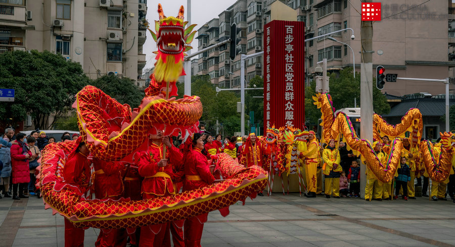 2020年1月18日拍攝于武漢市百步亭。在農(nóng)歷小年的時(shí)候,武漢市百步亭社區(qū)的舞龍表演。[攝影:于琳]