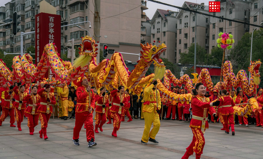 2020年1月18日拍攝于武漢市百步亭。在農(nóng)歷小年的時候,武漢市百步亭社區(qū)的舞龍表演。[攝影:于琳]