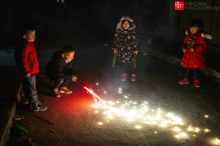 2019年2月19日,中國(guó)傳統(tǒng)元宵節(jié)。四川省三臺(tái)縣樂(lè)加鎮(zhèn),幾個(gè)小朋友在老街上玩煙火。當(dāng)他們長(zhǎng)大了,這個(gè)場(chǎng)景也許會(huì)成為他們最美好的回憶。[攝影:鐘智勇]