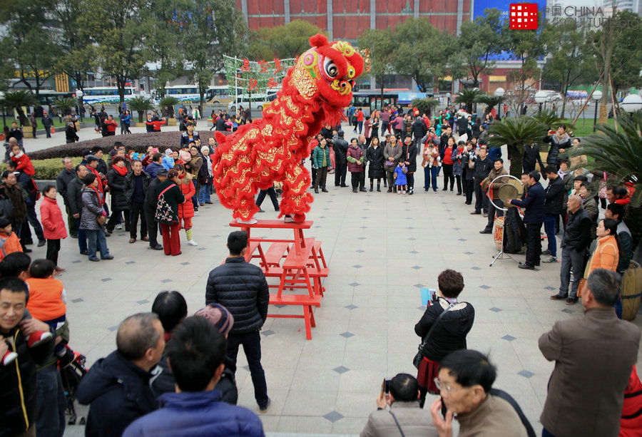 2015年1月至2019年1月拍攝于湖北宜昌。春節(jié)是中國民間最盛大的傳統(tǒng)節(jié)日,在傳承發(fā)展中承載了豐厚的歷史文化底蘊(yùn)。新春賀歲以除舊迎新、迎禧接福、拜神祭祖、祈求豐年等活動(dòng)形式展開,民間活動(dòng)有逛廟會、猜燈謎、舞龍舞獅、采蓮船等,內(nèi)容豐富多彩,熱鬧喜慶,年味濃郁,凝聚著中華文明的傳統(tǒng)文化精華。它不僅集中體現(xiàn)了中華民族的思想信仰、理想愿望、生活?yuàn)蕵泛臀幕睦?,而且還是祈福攘災(zāi)和娛樂活動(dòng)的狂歡式展示。本組照片是湖北宜昌城區(qū)近年春節(jié)期間群眾文化活動(dòng)的場面。[攝影:周學(xué)森]