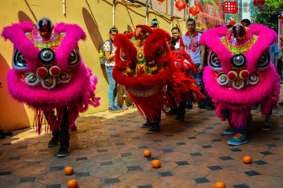 Photo taken at Territy Bazar in Central Kolkata, India on Feb16, 2018. Three beautiful Lions were dancing in the front of a Chinese house as per the rituals of auspicious Chinese new year. [Photo by Mayukh Mitra]