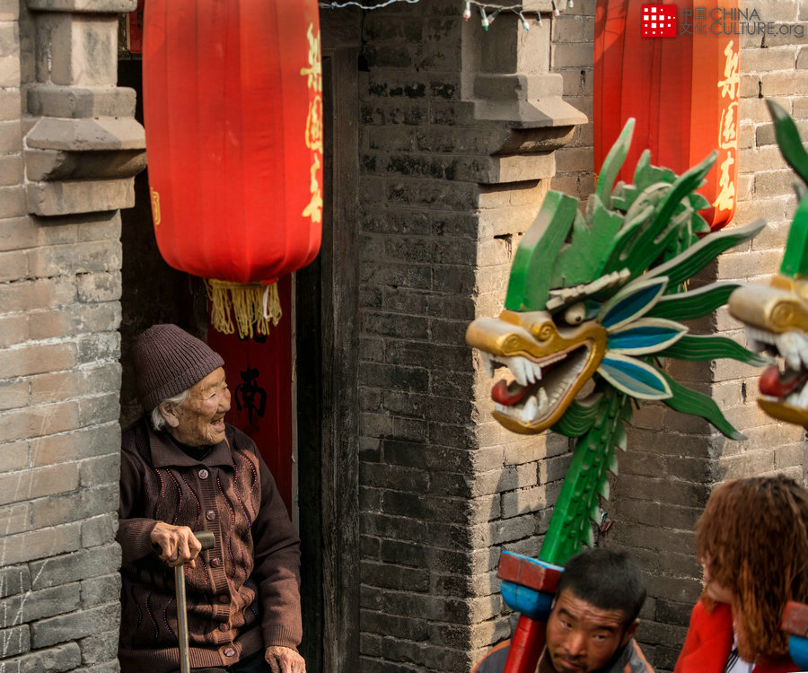 2015年3月拍攝于河北邯鄲市武安市。每年的正月新年里,鄉(xiāng)親們都會抬著廟里的大神走街串巷,為全村的人祈福,上了年齡的老奶奶不能跟著人群看熱鬧,就坐在自家的門前觀看過街的祈?;顒印攝影:郭偉]