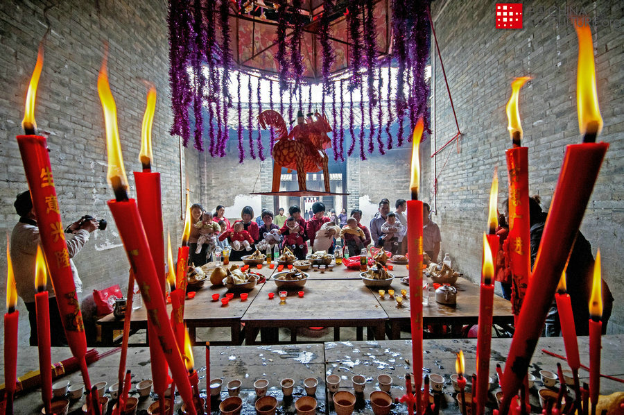 2018年正月十三拍攝于玉林市玉東區(qū)榕樓社區(qū)。傳宗接代、沿續(xù)香火是中國人厚重的傳統(tǒng)情結(jié)。而掛燈這一項民俗在位于嶺南的廣西玉林十分盛行。所謂掛燈,就是給在當(dāng)年正月初十前出生(已滿月)的男孩子掛燈,以示這家添了男丁,增添了香火,后繼有人了。組照描述的是廣西玉林市玉東新區(qū)茂林鎮(zhèn)榕樓社區(qū)泉口屯的掛燈儀式。泉口屯掛燈時間為每年的正月十三。 新的花燈懸掛起來后,各家各戶立馬點火上香,擺上大黃雞茶水酒水等祭祀品,添丁的父母或爺輩們抱著各自的孩子進行祭拜,虔求神靈、社主公和祖宗的保佑,保佑自家新男丁聰明伶利、健康成長。[攝影:曾宜]