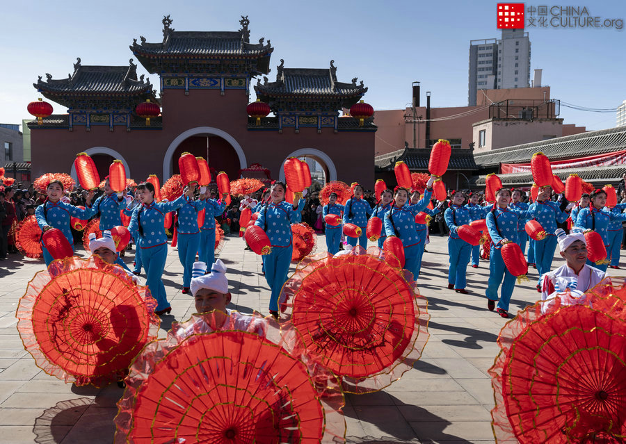 2019年2月15日拍攝于陜西省米脂縣行宮。春節(jié)秧歌演出。[攝影:欒武生]