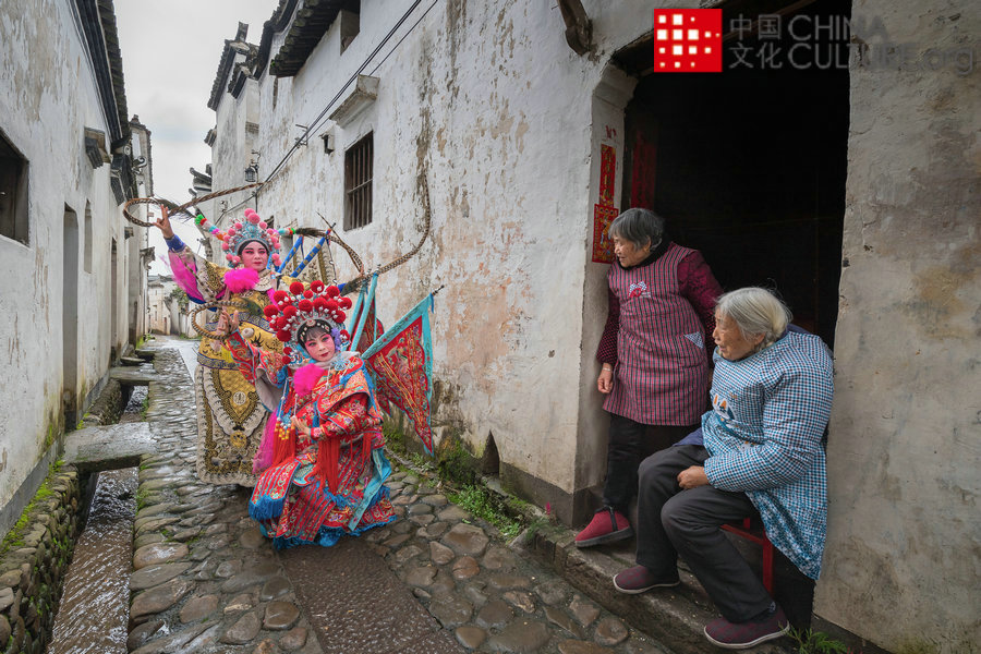 2019年3月6日拍攝于浙江省建德市李村。二月二 龍?zhí)ь^,村里請(qǐng)來戲班子。演員在村里即興表演。[攝影:郭梁勇]