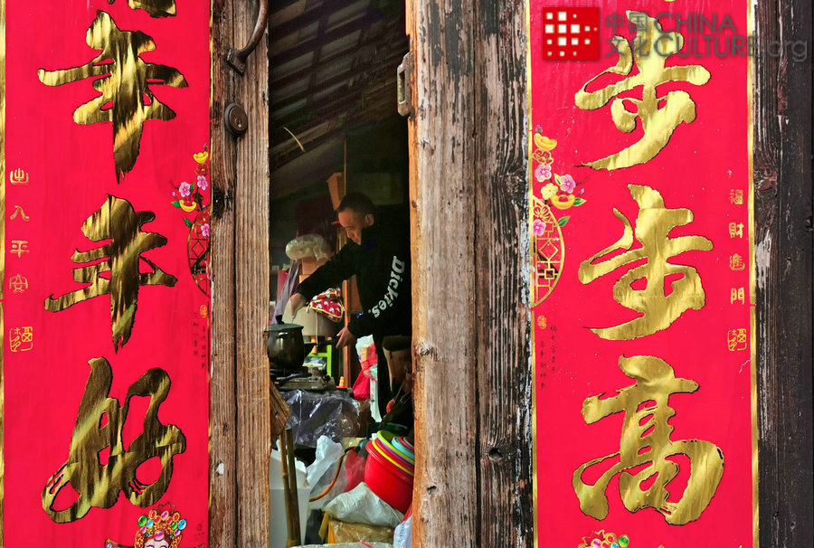 2020年1月24日拍攝于江蘇省南通市寺街。除夕這天是貼春聯(lián)、敬祖宗的民俗習(xí)慣,雖然己開始受非常事件影響,大型慶?;顒?dòng)已不搞了,但不少老街市民仍以家庭為單位歡慶佳節(jié),這里記錄了老巷市民的除夕花絮。[攝影:曹海峰]