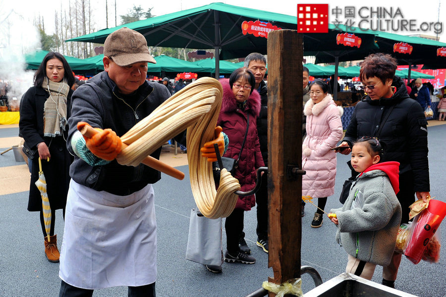 2020年1月18日拍攝于浙江省金華市婺州古城?!胺沁z過大年 文化進萬家”2020年金華婺州古城新春文化廟會熱鬧開場,吸引眾多市民游客前來“趕集”。傳統(tǒng)非遺美食、地道年貨展銷、手作新年禮物,好看、好吃、好玩的廟會,傳遞出濃濃的年味。[攝影:時補法]