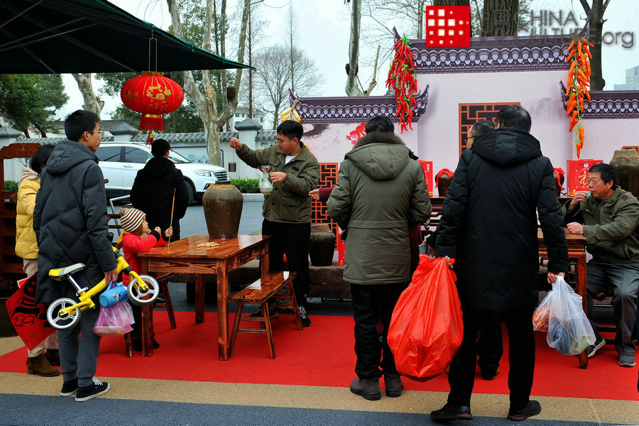 2020年1月18日拍攝于浙江省金華市婺州古城?!胺沁z過大年 文化進(jìn)萬家”2020年金華婺州古城新春文化廟會熱鬧開場,吸引眾多市民游客前來“趕集”。傳統(tǒng)非遺美食、地道年貨展銷、手作新年禮物,好看、好吃、好玩的廟會,傳遞出濃濃的年味。[攝影:時(shí)補(bǔ)法]