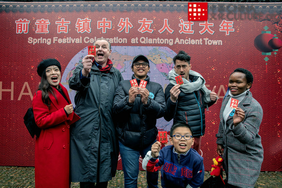 2020年1月11日拍攝于浙江省寧波市寧??h前童古鎮(zhèn)。來自俄羅斯、印度、摩洛哥等30多個國家的100多位國際友人應邀來到浙江省寧波市寧??h前童古鎮(zhèn),共同體驗原汁原味的中國傳統(tǒng)年俗。[攝影:王朝暉]