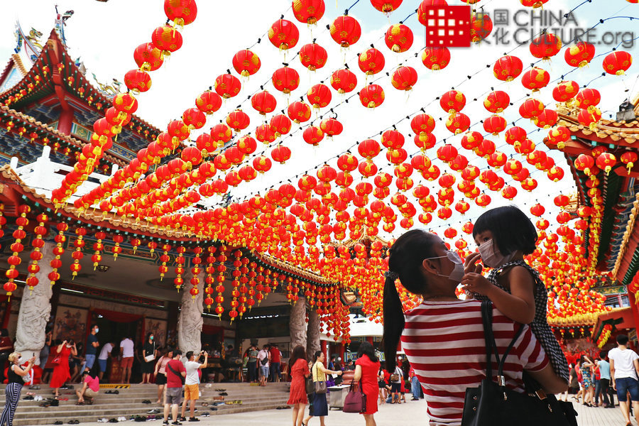 A woman and child wearing face mask during their visit to the Thean Hou Temple in Kuala Lumpur on Feb1, 2020. [Photo by Faihan Ghani]