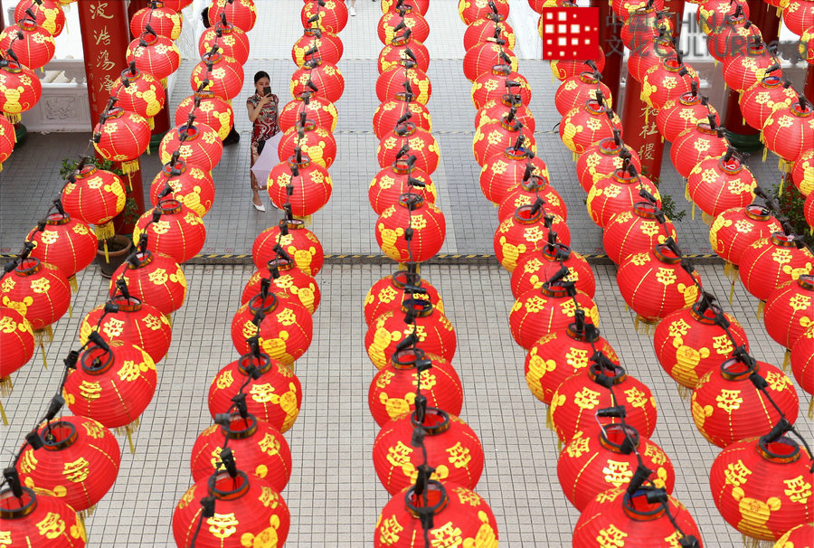 A women take a picture of red lanterns in the Thean Hou Temple during Chinese New Year celebration in Kuala Lumpur on Jan 15, 2020.
