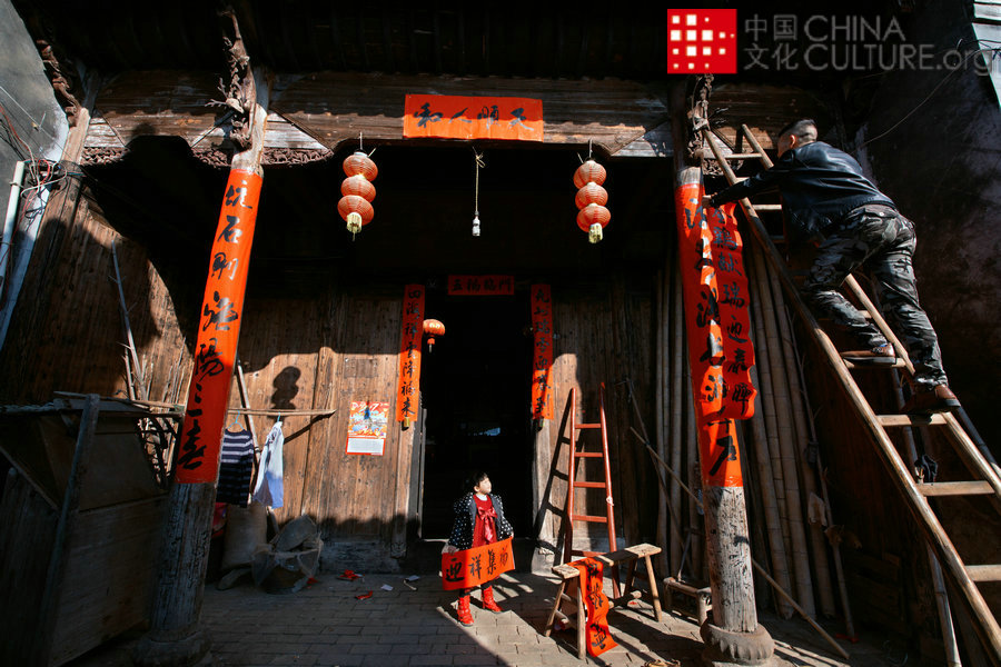 2017年1月和2019年2月拍攝于江西省樂安縣。每逢春節(jié),中國(guó)人都要在大門上貼上春聯(lián)喜迎春節(jié),一是祈禱來年大吉大利二是喜慶。[攝影:王慶華]