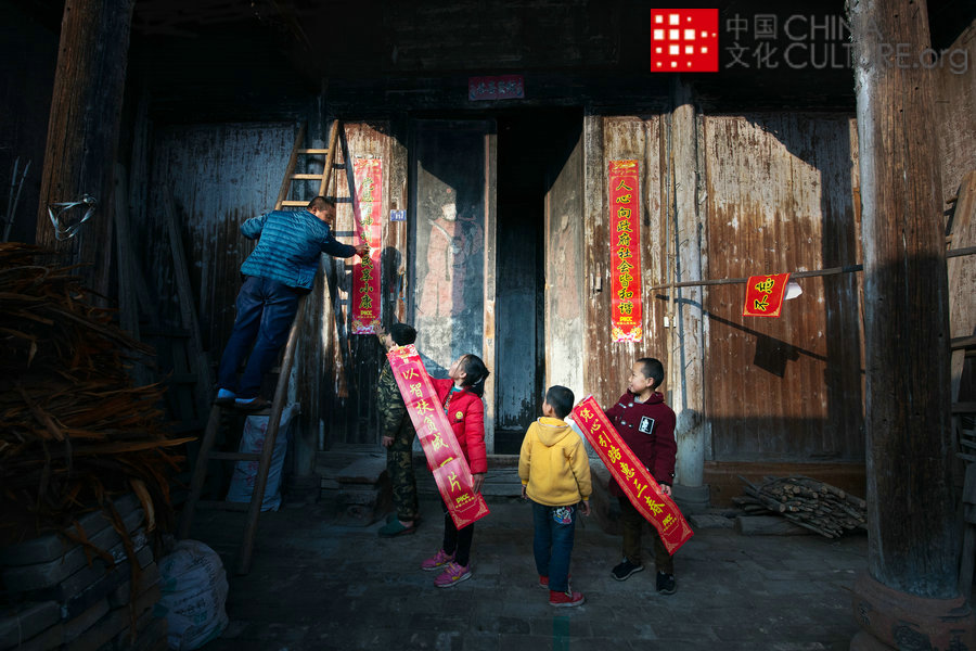 2017年1月和2019年2月拍攝于江西省樂安縣。每逢春節(jié),中國人都要在大門上貼上春聯(lián)喜迎春節(jié),一是祈禱來年大吉大利二是喜慶。[攝影:王慶華]