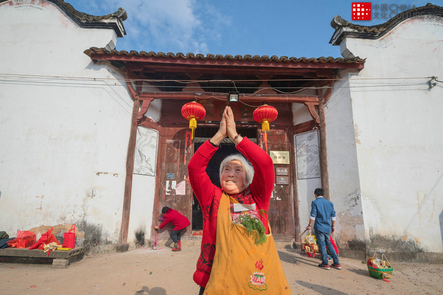 2016年2月6日至2019年2月5日拍攝于浙江省建德市李村。李村村作為千年古村有豐厚的文化傳承和人文文化,在玉華山下,有一座廟宇叫"白山殿",廟里供奉白山大帝。每逢大年初一,周邊四鄰八方的善男信女懷著一片虔誠(chéng)的信念前來燒香禮拜,香火十分旺盛。當(dāng)?shù)厮追Q“謝年”。[攝影:郭梁勇]