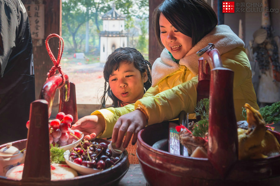2016年2月6日至2019年2月5日拍攝于浙江省建德市李村。李村村作為千年古村有豐厚的文化傳承和人文文化,在玉華山下,有一座廟宇叫"白山殿",廟里供奉白山大帝。每逢大年初一,周邊四鄰八方的善男信女懷著一片虔誠的信念前來燒香禮拜,香火十分旺盛。當(dāng)?shù)厮追Q“謝年”。[攝影:郭梁勇]