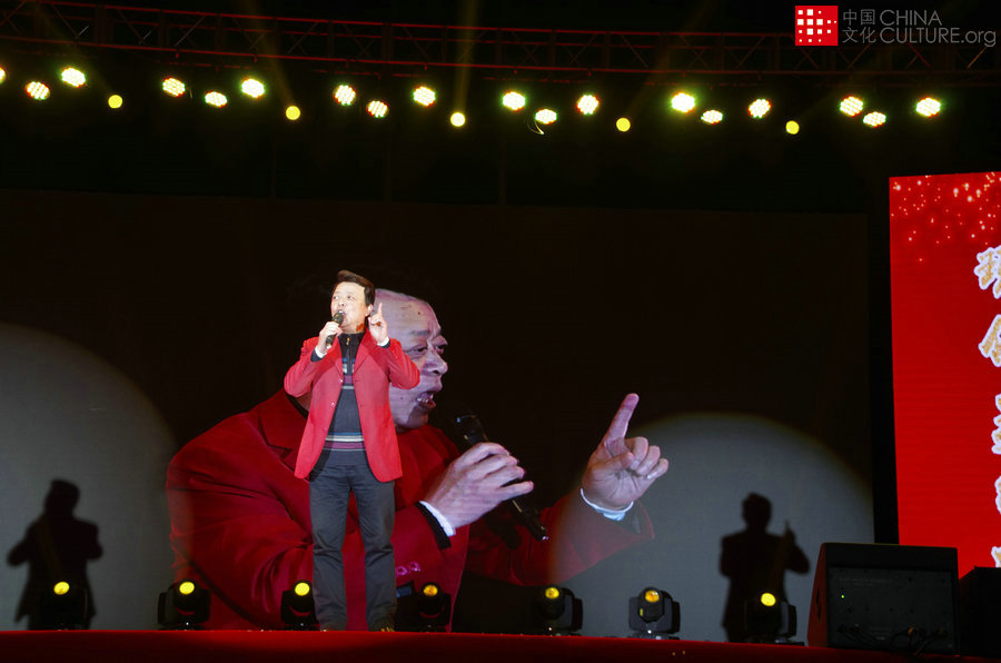 2020年1月20日拍攝于重慶市九龍坡區(qū)銅罐驛鎮(zhèn)。銅罐驛鎮(zhèn)于鎮(zhèn)堿胺廣場舉辦“幸福銅罐驛·現(xiàn)代美鄉(xiāng)村”2020年迎春晚會。晚會分為“新春的祝?!薄懊篮玫淖8!薄靶腋5恼雇比齻€篇章,以歌舞、雜技、語言節(jié)目、雜技等精彩藝術(shù)形式向百姓呈現(xiàn)這份文化饕餮盛宴。國家一級演員、國家級非遺傳承人、中國曲藝牡丹獎獲得者——吳文帶來的《重慶言子》著名男高音歌唱家、中國金鐘獎大獎獲得者、中國音樂家協(xié)會理事、重慶音樂家協(xié)會秘書長——姜明帶來的《山歌唱出好兆頭》國家一級文學(xué)編輯,中國電視藝術(shù)家協(xié)會會員,中國散文學(xué)會會員——賴永勤特意為銅罐驛創(chuàng)作的詩歌——《走進(jìn)美麗的銅罐驛》等文藝節(jié)目。[攝影:唐明旭]