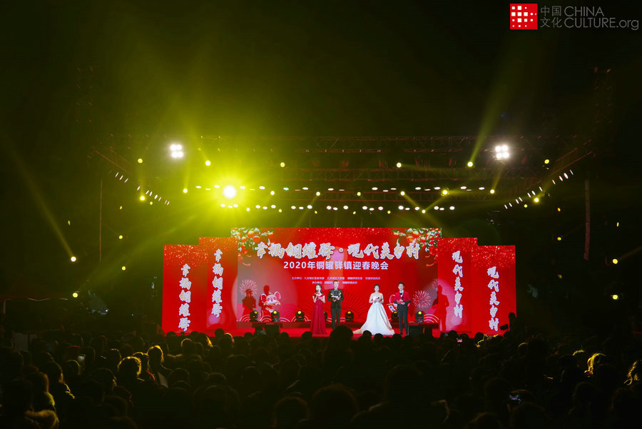 2020年1月20日拍攝于重慶市九龍坡區(qū)銅罐驛鎮(zhèn)。銅罐驛鎮(zhèn)于鎮(zhèn)堿胺廣場(chǎng)舉辦“幸福銅罐驛·現(xiàn)代美鄉(xiāng)村”2020年迎春晚會(huì)。晚會(huì)分為“新春的祝?!薄懊篮玫淖8!薄靶腋5恼雇比齻€(gè)篇章,以歌舞、雜技、語言節(jié)目、雜技等精彩藝術(shù)形式向百姓呈現(xiàn)這份文化饕餮盛宴。國家一級(jí)演員、國家級(jí)非遺傳承人、中國曲藝牡丹獎(jiǎng)獲得者——吳文帶來的《重慶言子》著名男高音歌唱家、中國金鐘獎(jiǎng)大獎(jiǎng)獲得者、中國音樂家協(xié)會(huì)理事、重慶音樂家協(xié)會(huì)秘書長——姜明帶來的《山歌唱出好兆頭》國家一級(jí)文學(xué)編輯,中國電視藝術(shù)家協(xié)會(huì)會(huì)員,中國散文學(xué)會(huì)會(huì)員——賴永勤特意為銅罐驛創(chuàng)作的詩歌——《走進(jìn)美麗的銅罐驛》等文藝節(jié)目。[攝影:唐明旭]