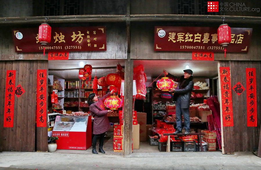 2020年1月拍攝于浙江省江山市清湖古鎮(zhèn)。每年老街掛燈籠,貼對聯(lián)成為一道亮麗風(fēng)景。[攝影:姜天華]