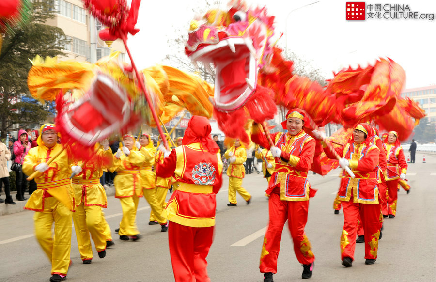 2020年1月16日拍攝于山東省威海市環(huán)翠區(qū)張村鎮(zhèn)。大活報(bào)作為威海當(dāng)?shù)貍鹘y(tǒng)民俗在民間深受推崇。每年,威海市各鄉(xiāng)鎮(zhèn)都會(huì)組織不同形式不同規(guī)模的大活報(bào)表演。熱鬧、喜慶、紅紅火火是大活報(bào)不變的主題。當(dāng)新春的腳步越來(lái)越近,忙碌了一年的人們按下工作的“暫停鍵”,穿上鮮艷的紅衣,掛上大紅燈籠,舞起飄揚(yáng)的紅綢、彩帶,扭秧歌、跑旱船、耍毛驢、舞獅子、耍長(zhǎng)龍……,以傳統(tǒng)的娛樂(lè)形式迎接新春的到來(lái),濃濃年味撲面而來(lái)。[攝影:趙學(xué)軍]