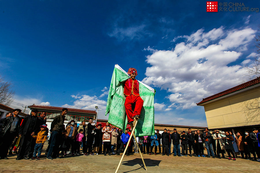 2019年3月14日拍攝于河北雄縣梁家堂。河北雄縣昝崗梁神堂高蹺歷史悠久遠(yuǎn)近聞名,其中跳大板最精彩。每年農(nóng)歷二月初八都在梁神堂廟會上走鄉(xiāng)串戶進(jìn)行表演,深受群眾喜愛。因雄安建設(shè)規(guī)劃需要,2019年下半年該村進(jìn)行了整體搬遷。[攝影:楊海強]