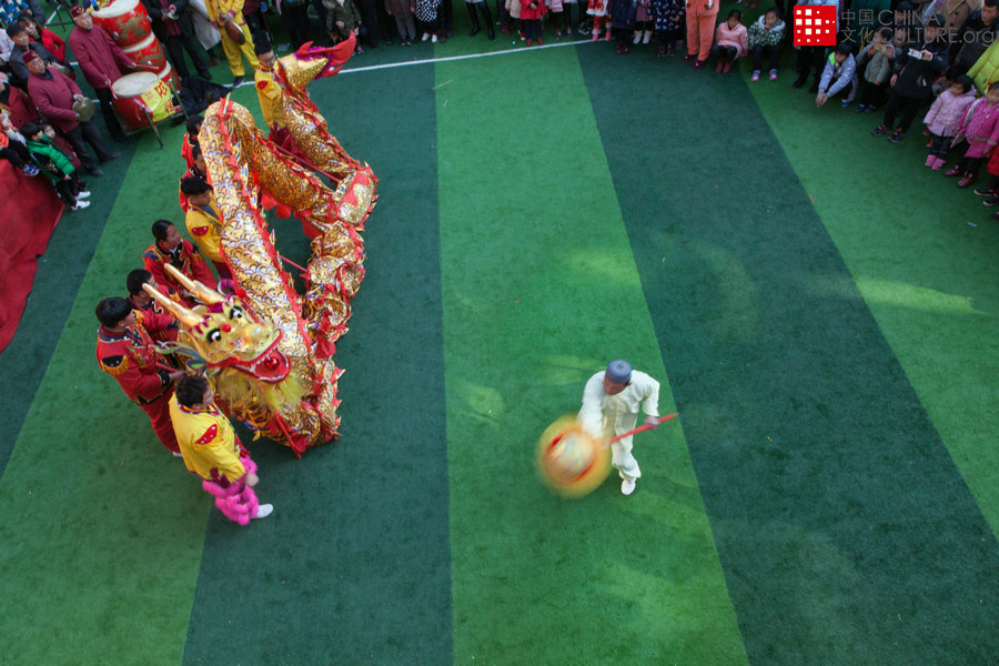 2017年2月12日拍攝于安徽省太和縣縣城。舞龍,又稱玩龍燈,是中華民族的傳統(tǒng)民俗文化活動(dòng),以舞龍的方式來祈求平安和吉祥。舞龍?jiān)醋怨湃藢埖某绨?,每逢喜慶節(jié)日,人們都會(huì)舞龍。[攝影:王傳杰]