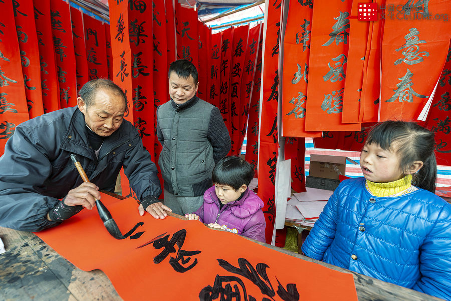 2014年1月25日拍攝于安徽省青陽縣蓉城鎮(zhèn)。前輩在傳承中華文化。[攝影:尚良智]