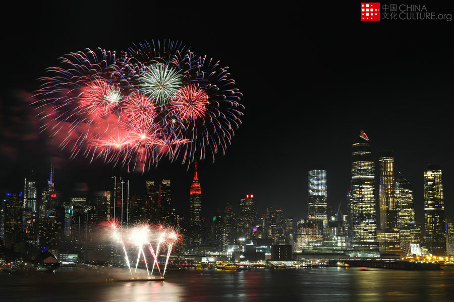 2020年1月23日拍攝于美國紐約。在紐約曼哈頓哈德遜河上,點燃了歡樂喜慶的煙花匯演,慶祝春節(jié)的璀璨煙花,照亮了紐約的天際線,令人鼓舞與激動。[攝影:Rongda Yu]
