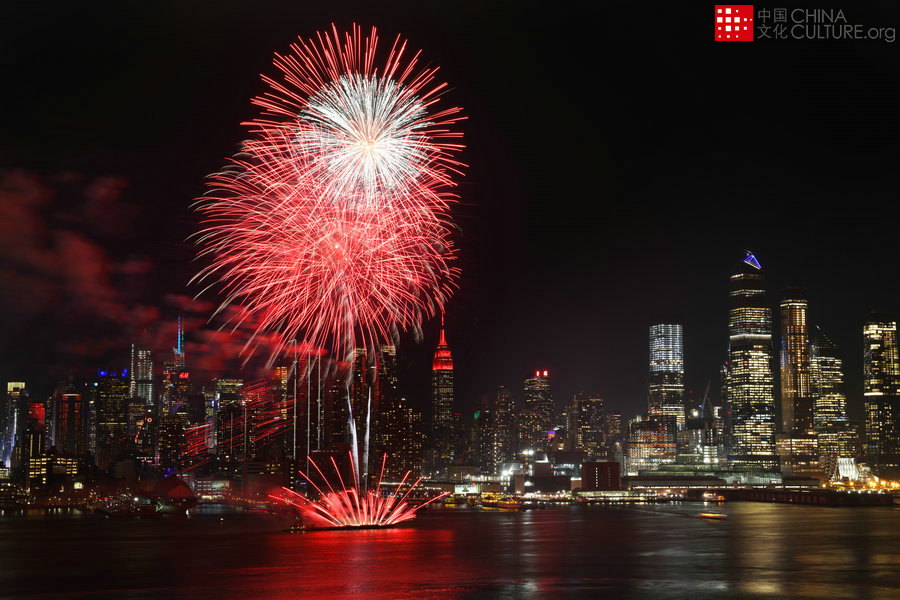 2020年1月23日拍攝于美國紐約。在紐約曼哈頓哈德遜河上,點燃了歡樂喜慶的煙花匯演,慶祝春節(jié)的璀璨煙花,照亮了紐約的天際線,令人鼓舞與激動。[攝影:Rongda Yu]