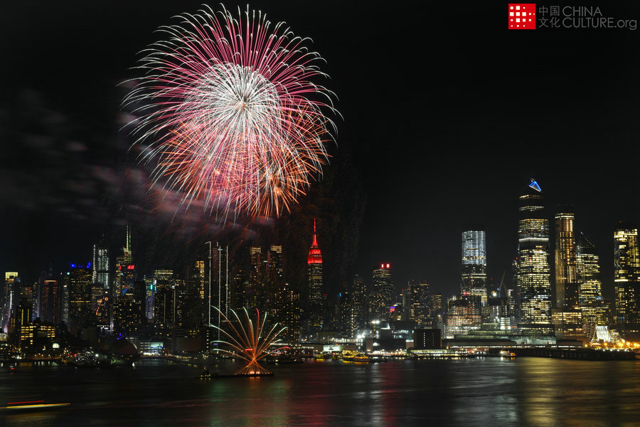 2020年1月23日拍攝于美國紐約。在紐約曼哈頓哈德遜河上,點(diǎn)燃了歡樂喜慶的煙花匯演,慶祝春節(jié)的璀璨煙花,照亮了紐約的天際線,令人鼓舞與激動(dòng)。[攝影:Rongda Yu]