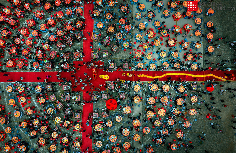2018年12月1日拍攝于福建省漳州市平和縣。村民舉行慶豐收迎新春活動(dòng),他們擺出自家美食,迎接四面八方相鄰前來共享。[攝影:張煒]
