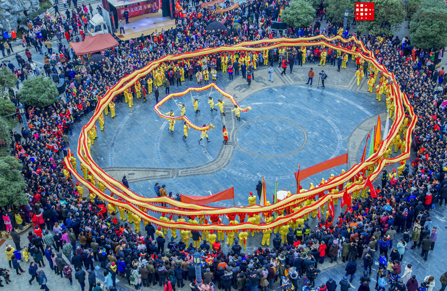 2017年2月17日拍攝于湖南省邵東市昭陽公園。2017年元宵節(jié),湖南省邵東市,來自縣城郊的農(nóng)民們,有108名舞龍青壯年組成的舞龍隊,在縣城公園歡度新春。[攝影:唐順富]