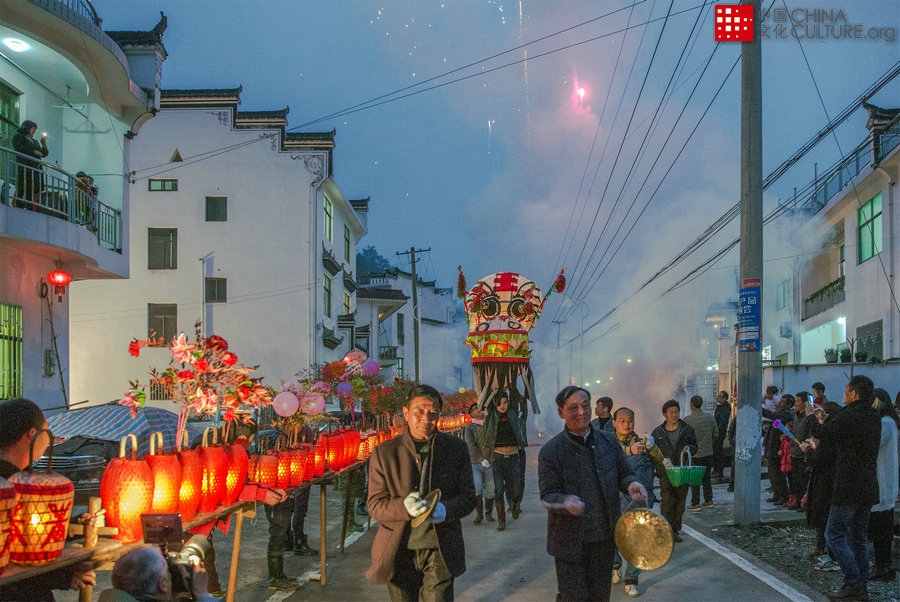 組圖2018年2月、2019年12月、2020年元月拍攝于江西省上饒市婺源縣。婺源鄉(xiāng)村過(guò)大年民俗有舞板凳龍、表演儺舞、群眾自發(fā)組織的唱大戲等活動(dòng)。[攝影:汪立浪]