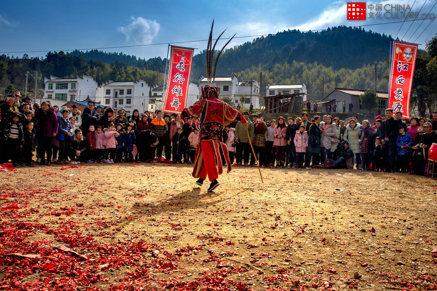 組圖2018年2月、2019年12月、2020年元月拍攝于江西省上饒市婺源縣。婺源鄉(xiāng)村過(guò)大年民俗有舞板凳龍、表演儺舞、群眾自發(fā)組織的唱大戲等活動(dòng)。[攝影:汪立浪]