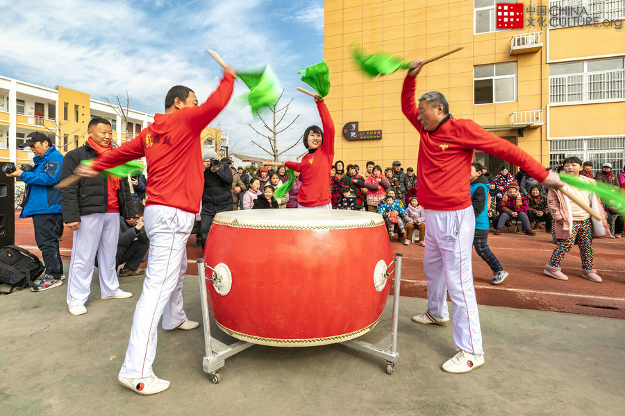 2019年2月13日至16日拍攝于江蘇省徐州市大彭鎮(zhèn)。徐州市大彭鎮(zhèn)黨委及鎮(zhèn)政府每年會在正月十五前組織大型民間文藝團(tuán)體到下屬的村進(jìn)行送戲下鄉(xiāng)演出活動。[攝影:胡永興]