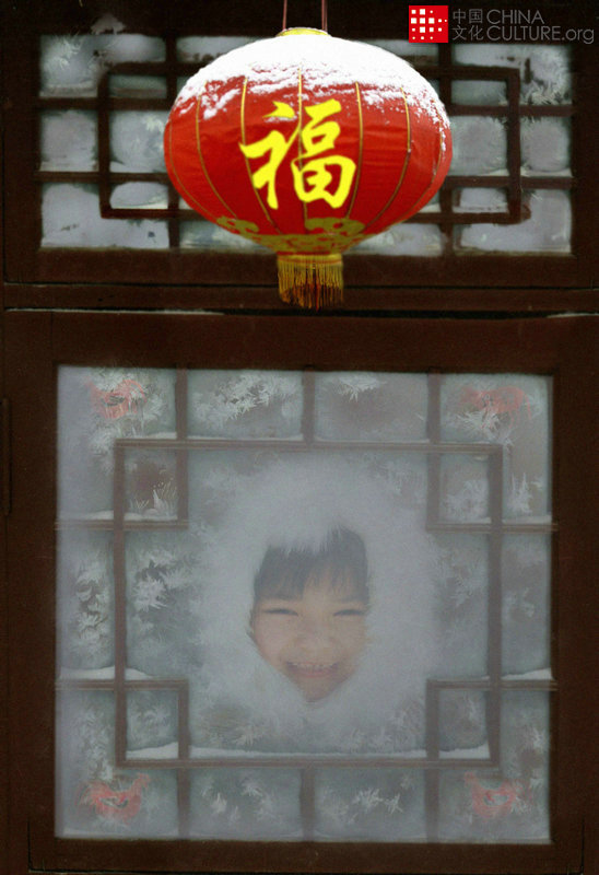 2014年2月1日拍攝于遼寧沈陽。冰花凍住了窗戶,小孩子呵化冰,露出小小一張臉,真是個(gè)雪娃娃。這張抓拍搶的就是小女孩露出笑臉的瞬間。[攝影:方海鷹]