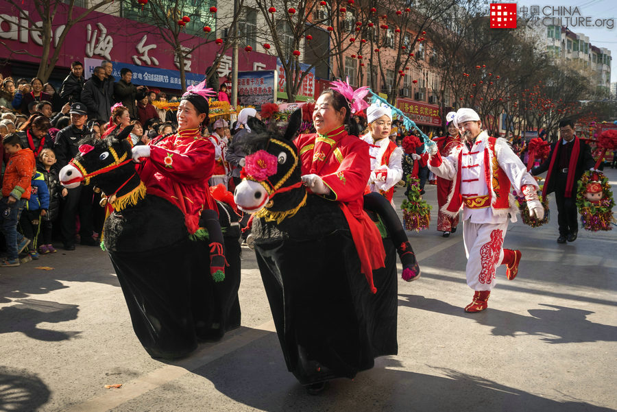 2017年2月11日拍攝于陜西省子洲縣城。秧歌鬧新春,跑驢演的美。[攝影:吳志林]