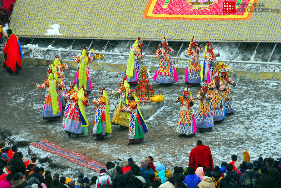 2018年2月28日拍攝于甘肅甘南郎木寺鎮(zhèn)。甘南郎木寺的曬佛節(jié)是每年的新春正月十三,節(jié)日當(dāng)天,寺中的僧侶們會取出寺中珍藏的錦織佛像晾曬,場面非常壯觀,氣氛也很隆重,吸引了來自世界各地的觀光者、朝拜者和攝影者。[攝影:巨全毅]