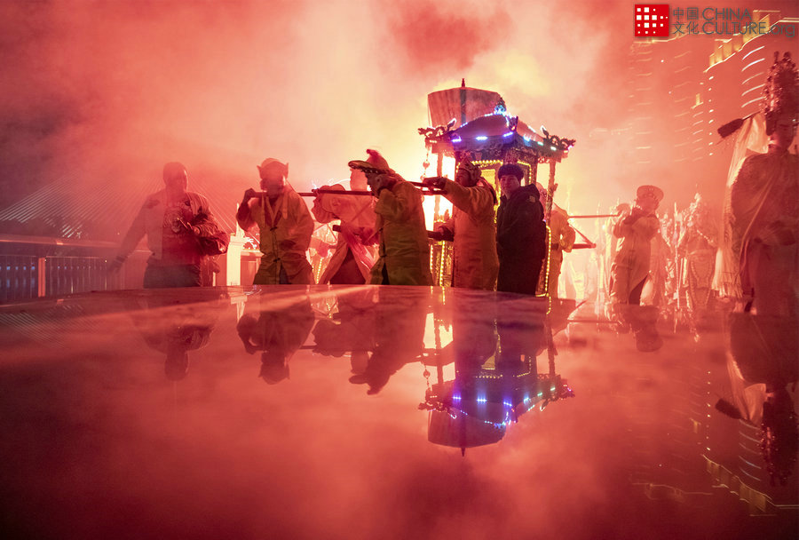本組照片拍攝于2013年至2019年,歷時7年紀(jì)實攝影,記錄福州本地即將消失的民間傳統(tǒng)春節(jié)習(xí)俗遺存。本組照片重視環(huán)境烘托民俗主題,講述福州春節(jié)8個老傳統(tǒng)老習(xí)俗俗例 。 《正月熱鬧數(shù)迎年》早年迎神賽會是新春佳節(jié)最熱鬧的一種活動。[攝影:林聰生]