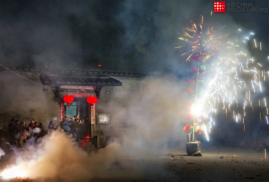 本組照片拍攝于2013年至2019年,歷時(shí)7年紀(jì)實(shí)攝影,記錄福州本地即將消失的民間傳統(tǒng)春節(jié)習(xí)俗遺存。本組照片重視環(huán)境烘托民俗主題,講述福州春節(jié)8個(gè)老傳統(tǒng)老習(xí)俗俗例 ?!侗衤曋谐f歲》除夕夜福州人就有“放火爆”的習(xí)俗。[攝影:林聰生]