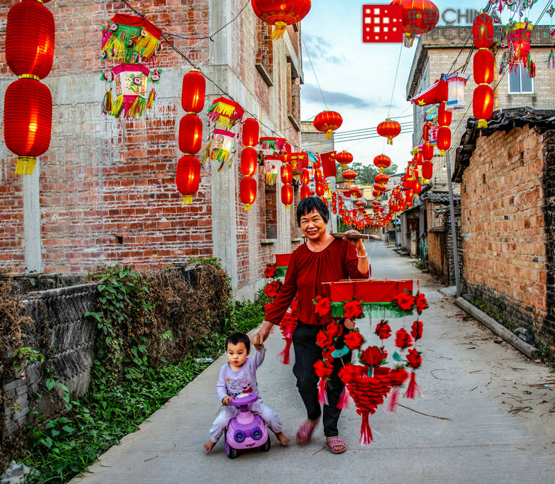 2019年正月初十拍攝于廣東省信宜六雙村。廣東信宜六雙村,每年在正月初十迎新春家家戶戶掛花燈,游花燈張燈結(jié)彩,囍氣洋洋,希望在新一年里風調(diào)雨順,平平安安。[攝影:程朗]